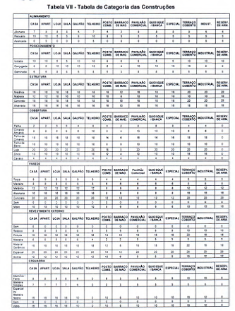 O valor do metro quadrado da edificação por tipologia construtiva (Vme) é definido na Tabela II, constante do ANEXO II, conforme enquadramento da edificação por tipologia construtiva no Cadastro Imobiliário.